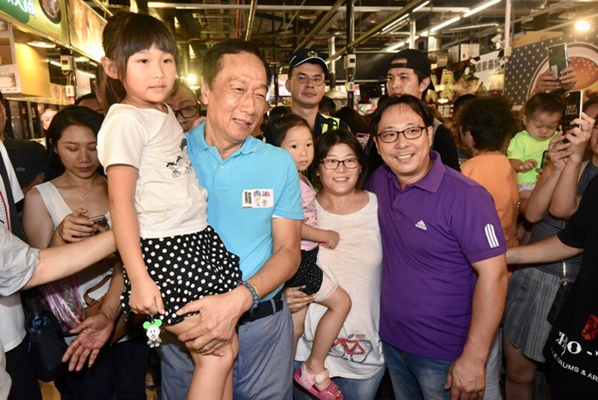 中國臺(tái)灣網(wǎng)6月9日訊 據(jù)臺(tái)灣“東森新聞云”報(bào)道,臺(tái)灣鴻海集團(tuán)董事長(zhǎng)郭臺(tái)銘,為參加國民黨2020初選爭(zhēng)取民眾支持,8日繼續(xù)北臺(tái)灣夜市行程,拜訪新店區(qū)安和國際夜市并發(fā)放福袋,受到攤商和當(dāng)?shù)孛癖姷臒崆榻哟。民眾扶老攜幼前來合影,郭臺(tái)銘來者不拒通通將小孩一把抱起展現(xiàn)親民作風(fēng)。親切的郭臺(tái)銘點(diǎn)了200元(新臺(tái)幣)平民小吃,并率領(lǐng)民眾向蔡當(dāng)局嗆聲高喊“人民不能再忍耐另一個(gè)4年了”!