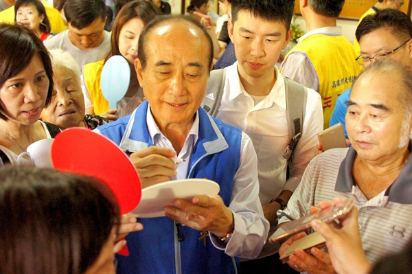 王金平拜廟,信眾擁簇向他要簽名。(圖片來(lái)源:臺(tái)灣《聯(lián)合報(bào)》)
