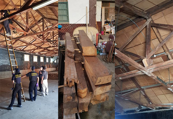 嘉義縣警方表示,位于六腳鄉(xiāng)的臺(tái)糖倉(cāng)庫(kù),是縣府租用推廣文藝展覽等活動(dòng),共有9棟70多年歷史,使用珍貴臺(tái)灣檜木搭建的廠房,警方循線查獲主要嫌疑人古某及收贓嫌犯陳某等4人,并起獲遭竊檜木梁柱,加工后成品檜木板條9支,還清查到陳某、張某兩名嫌疑人涉及盜竊云林北港、臺(tái)南鹽水糖廠倉(cāng)庫(kù)檜木,正擴(kuò)大與臺(tái)南、云林共辦中。