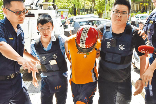 韓姓男子(右二)案發(fā)后遭警方循線在他楠梓區(qū)住處逮捕。(圖片來源:臺灣“中時電子報”)