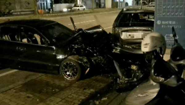 從畫面中可見,黑色轎車速度非?,大力撞及后引擎蓋被掀起、車頭全毀,而休旅車后半部也整個凹陷脫落,零件噴散一地。遭撞的機車和貨車駕駛受到輕傷送醫(yī),而肇事的謝某經(jīng)酒測值為零,但撞車逃逸又攻擊警方,訊后被依肇事逃逸、傷害罪送辦。(中國臺灣網(wǎng) 賈若瀾)