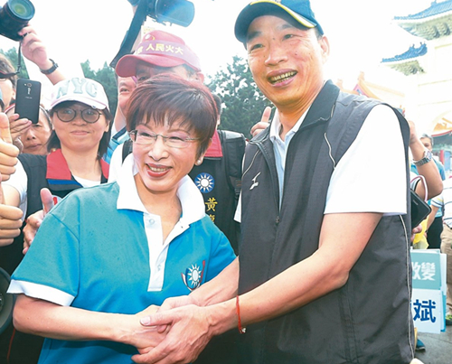 洪秀柱與韓國瑜。(圖片來源;臺(tái)灣《聯(lián)合報(bào)》)
