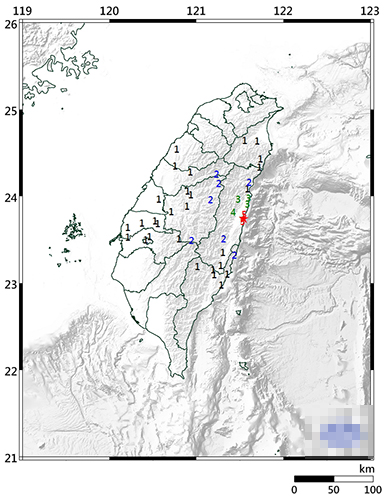 臺灣花蓮今中午又有兩次地震 最大規(guī)模里氏4.8級