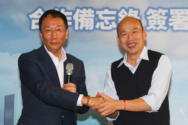 郭臺(tái)銘與韓國(guó)瑜。(圖片來源:臺(tái)灣《聯(lián)合報(bào)》)