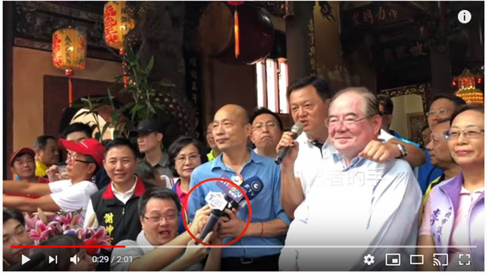 韓國瑜幫記者拿麥克風畫面(圖片來源:臺灣“中時電子報”)