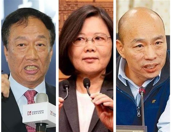 左起郭臺(tái)銘、蔡英文和韓國(guó)瑜。(圖片來(lái)源:臺(tái)灣“中時(shí)電子報(bào)”)