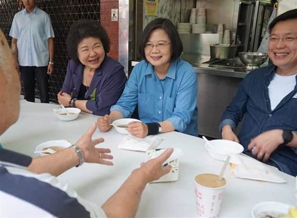 蔡英文直攻對手韓國瑜所在的高雄市,由陳菊陪同搶選票,還吃了紅豆牛奶冰。(圖片來源:臺灣“中時電子報”)