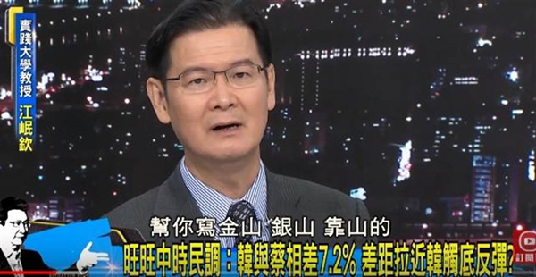 江岷欽在政論節(jié)目《少康戰(zhàn)情室》表示,韓國瑜與蔡英文的民調(diào)已進入“剪刀腳”局勢,是有機會的,關(guān)鍵就在“震蕩加劇,贏在修正”。韓雖目前看起來有“政策顧問團”跟很多輔選成員,但基本上主軸還是韓一個人,變成整個選舉都是以“一個人的武林”為主。縱然韓已有些修正,但仍不脫過去選黨主席和市長的主軸。