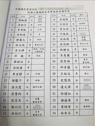 國(guó)民黨不分區(qū)“立委”名單。(圖片取自臺(tái)媒)