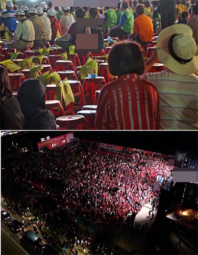 蔡英文高雄競選總部成立會(上)與韓國瑜和新北“立委”參選人的聯(lián)合造勢(下)對比。(合成圖)