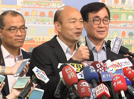 國(guó)民黨2020候選人韓國(guó)瑜(中)(圖片來(lái)源:臺(tái)灣“東森新聞云”)