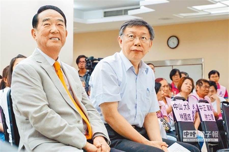 臺(tái)灣親民黨主席宋楚瑜(左)、臺(tái)灣民眾黨主席柯文哲。(圖片來(lái)源:臺(tái)灣“中時(shí)電子報(bào)”)