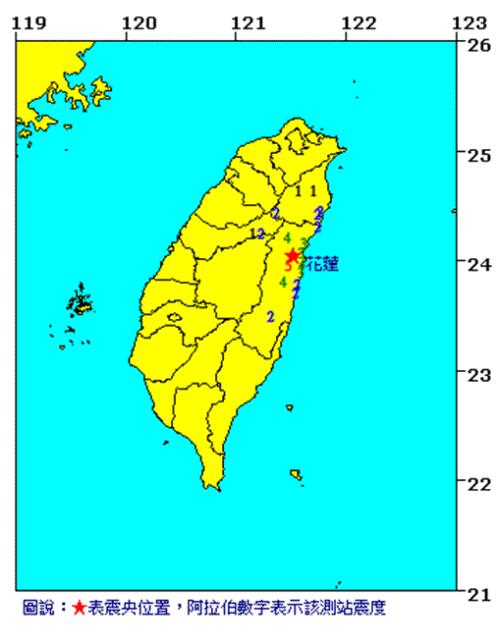 臺(tái)灣花蓮縣發(fā)生4.0級(jí)地震。(圖片取自臺(tái)媒)