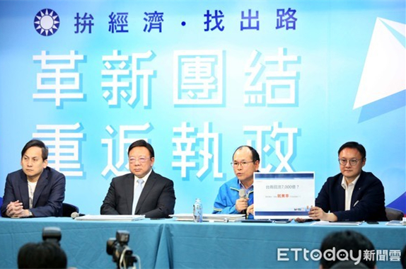 韓國(guó)瑜競(jìng)選辦公室召開“臺(tái)灣經(jīng)濟(jì)大好,你信嗎?!”記者會(huì)。(圖片來(lái)源:臺(tái)灣“東森新聞云”)