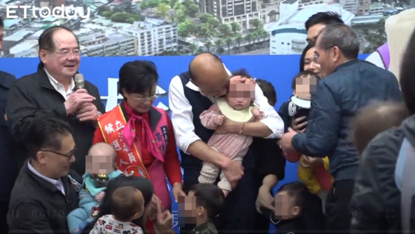 韓國(guó)瑜親吻女嬰。(圖片來源:臺(tái)灣“東森新聞云”)