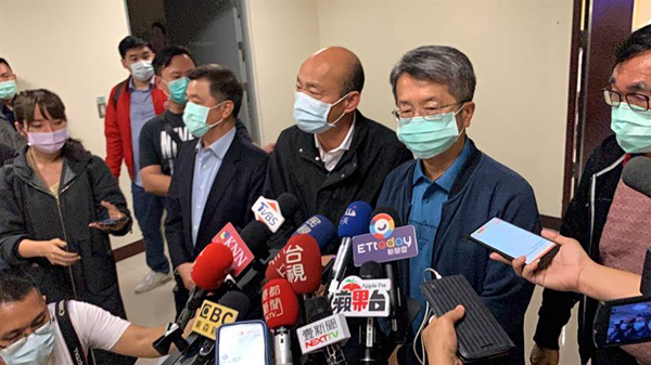 韓國(guó)瑜宣布高雄防疫升級(jí)應(yīng)對(duì)肺炎疫情。(圖片來(lái)源:臺(tái)灣“中時(shí)電子報(bào)”)