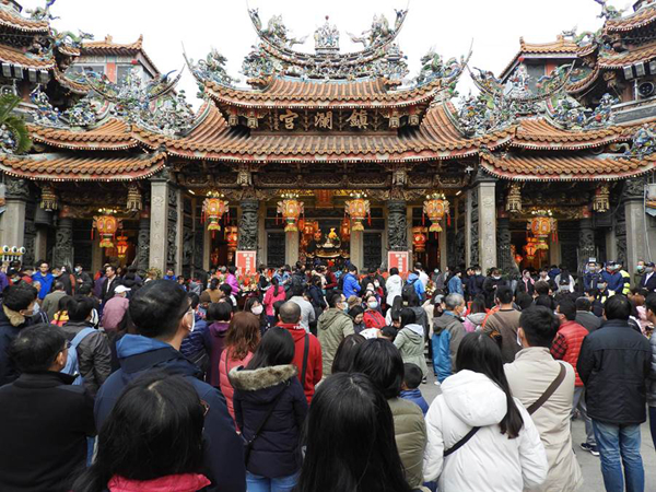 大甲鎮(zhèn)瀾宮前廣場人山人海,等待馬英九到來。(圖片來源:臺灣“中時電子報”)