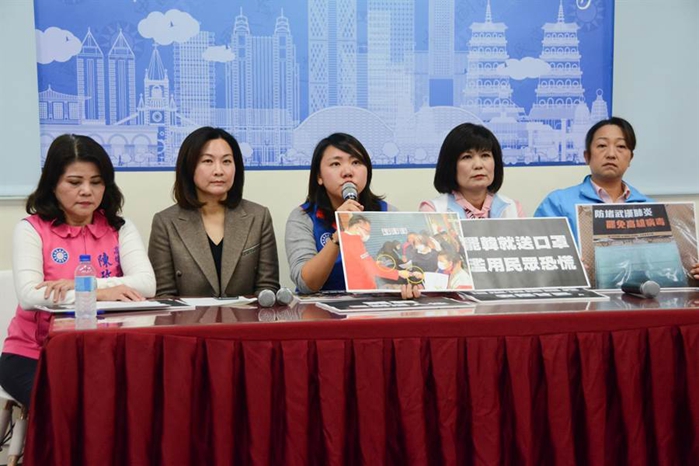 國(guó)民黨高雄市議員陳玫娟、陳麗娜、邱于軒、陳若翠、李雅芬等人3日舉辦“罷韓罷到?jīng)]人性”記者會(huì)。(圖片來源:臺(tái)灣“中時(shí)電子報(bào)”)