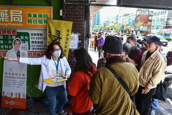 島內(nèi)實(shí)名制購(gòu)買口罩措施上路后,常見(jiàn)到健保特約藥局外排滿民眾。(圖片來(lái)源:臺(tái)灣“中時(shí)電子報(bào)”)