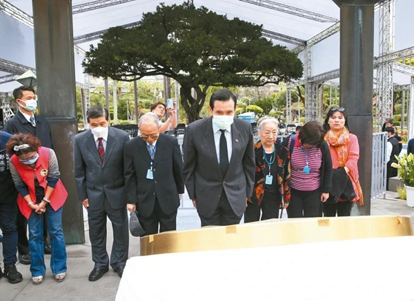 馬英九(中)上午到“二二八”和平公園福德宮上香祈福,并到“二二八”紀(jì)念碑追思。(圖片來(lái)源:臺(tái)灣《聯(lián)合報(bào)》)