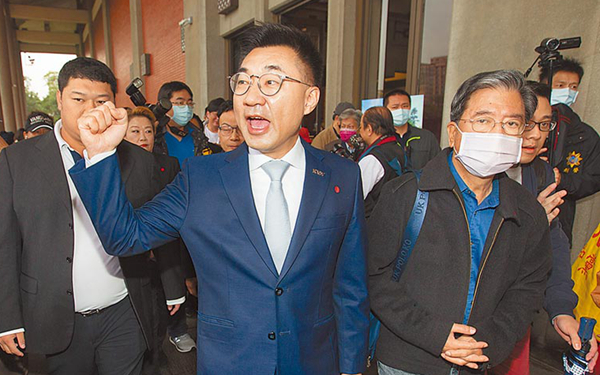 國(guó)民黨主席江啟臣(中)。(圖片來(lái)源:臺(tái)灣“中時(shí)電子報(bào)”)