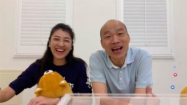 高雄市長(zhǎng)韓國(guó)瑜(右)與國(guó)民黨“立委”許淑華(左)曾一起開(kāi)直播。(圖片取自臺(tái)媒)