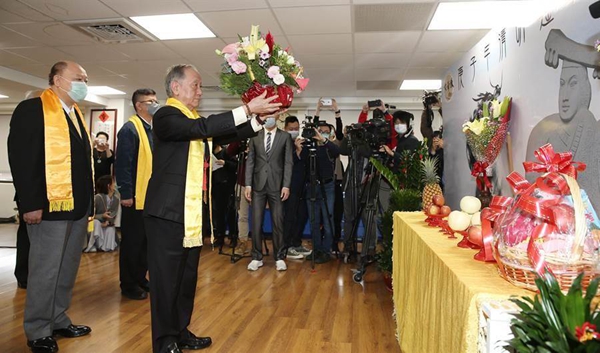 新黨榮譽(yù)主席郁慕明(中左)4日率領(lǐng)黨內(nèi)同志在中央黨部遙祭軒轅黃帝。(圖片取自臺(tái)媒)