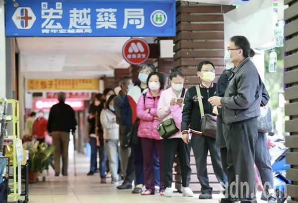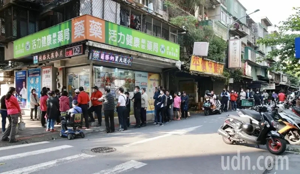 各地藥局涌現(xiàn)排隊(duì)人潮,不少人都深怕晚一步買(mǎi)不到。(圖片來(lái)源:臺(tái)灣《聯(lián)合報(bào)》)