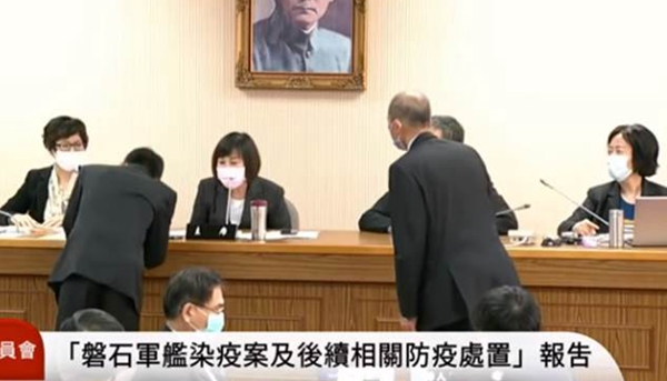 陳道輝表示,他用生命保證,絕對(duì)沒有隱瞞任何疫情,如果知道已經(jīng)有人感染,一定會(huì)遵照民進(jìn)黨當(dāng)局防務(wù)主管部門的命令立刻返航。國民黨“立委”呂玉玲問,是誰決定讓人員在左營軍港解散的?陳道輝說“我沒這個(gè)權(quán)限”,但確實(shí)沒有按照自己的想法去做,他是“按照命令執(zhí)行”。他表示,這是他穿上白軍服30年來最痛苦的時(shí)刻,強(qiáng)調(diào)沒有做對(duì)不起大家的事。只是陳道輝話還沒說完,敖以智、梅家樹就馬上到主席臺(tái)把電話拿走。主持人劉寶杰在新聞節(jié)目《關(guān)鍵時(shí)刻》上直言,都什么時(shí)候了,這么大的事情,到底誰該負(fù)責(zé),竟還沒有答案,還在官官相護(hù)。