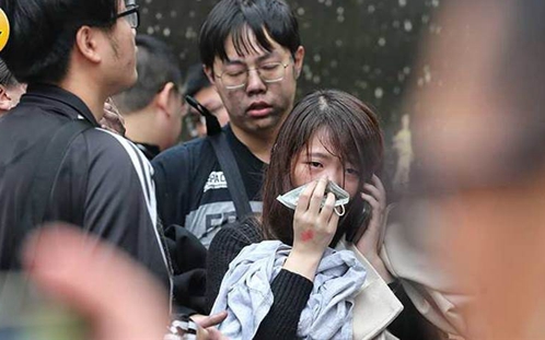 女子逃出KTV后表情驚恐地打電話(huà)報(bào)平安。(圖片來(lái)源:臺(tái)灣“中時(shí)電子報(bào)”)