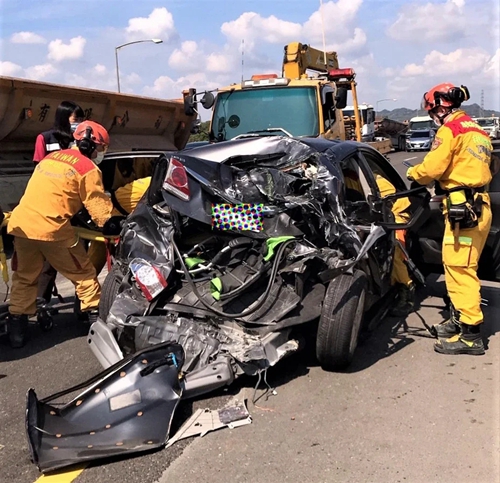 中國(guó)臺(tái)灣網(wǎng)5月2日訊 據(jù)臺(tái)灣《聯(lián)合報(bào)》報(bào)道,屏東縣里港鄉(xiāng)屏10線青龍寺附近今天(2日)上午近9時(shí)發(fā)生連環(huán)車禍案,現(xiàn)場(chǎng)為4輛砂石車及2輛轎車追撞,有2名乘客受困。屏東縣消防局派遣3輛破壞器材車、6輛救護(hù)車共9車17人前往救援,抵達(dá)現(xiàn)場(chǎng)后于9時(shí)19分分別將人員救出及送醫(yī),現(xiàn)場(chǎng)有8名傷者(5男3女),無生命危險(xiǎn)。