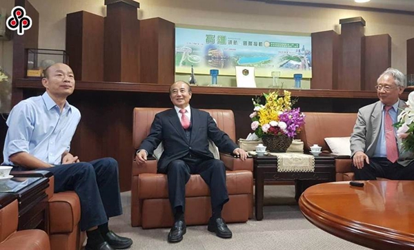 高雄市農(nóng)會理事長蕭漢。ㄓ遥┍硎,臺灣前“立法院長”王金平(中)認為民進黨傾全力“罷韓”,身為國民黨員,王會在適當時講適當?shù)脑挘響B(tài)支持韓國瑜(左)。(圖片來源:臺灣“中時電子報”)