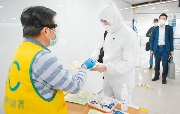 圖為一名穿著防護(hù)衣的旅客抵達(dá)桃園機(jī)場。(圖片來源:臺灣“中時電子報”)