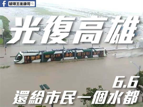 臉譜網(wǎng)(facebook)粉絲專頁“破壞王沖康哥”昨日在粉絲團發(fā)文諷刺,“水上樂園不好嗎?水上輕軌不好嗎?過去,高雄淹的不只是水,淹的是滿溢的臺灣價值!自從國民黨奪走高雄之后,連臺灣價值都消退了!這不是我們愛的高雄,更不是幸福之都!”附圖可見當時8/23高雄夢時代購物中心周邊因嚴重積水,出現(xiàn)輕軌在水上行駛的照片。其他網(wǎng)友也紛紛開酸,“6.6之后就不會淹水了更不會積水,地永遠是干的”“營造一個水都樂園, 要付出多少年心思”。(中國臺灣網(wǎng) 李寧)