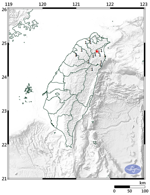 各地震度級(jí):宜蘭縣、新北市、桃園市、新竹縣、花蓮縣、苗栗縣1級(jí)。(中國(guó)臺(tái)灣網(wǎng) 李寧)