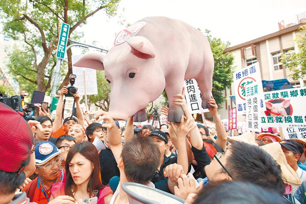 圖為臺灣民眾此前在臺“立院”外抗議瘦肉精美豬進(jìn)口。(圖片來源:臺灣“中時(shí)電子報(bào)”)