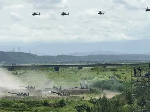 臺軍第五作戰(zhàn)區(qū)2日采“實兵、實彈、全裝”模式進(jìn)行實彈射擊,按照所謂的“戰(zhàn)力防護(hù)、濱海決勝、灘岸殲敵”作戰(zhàn)方針,以聯(lián)合兵種營為主體,整合作戰(zhàn)區(qū)內(nèi)三軍兵、火力,阻擋解放軍進(jìn)攻。現(xiàn)場臺空軍F-16戰(zhàn)機(jī)與臺陸軍雷霆火箭,各型自行火炮及攻擊直升機(jī)都同步轟炸,臺海軍也派出軍艦操演。