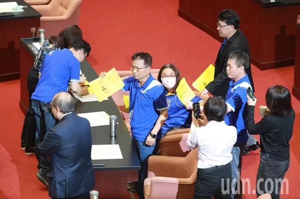 “NCC”人事案投票 國(guó)民黨團(tuán)在選票上寫下“拒投東廠”抗議