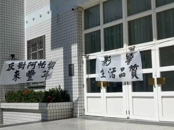 臺東縣政府18日舉辦“阿帕奇規(guī)劃進駐臺東”說明會,民眾在場外掛布條抗議。(圖片來源:臺灣《聯(lián)合報》)