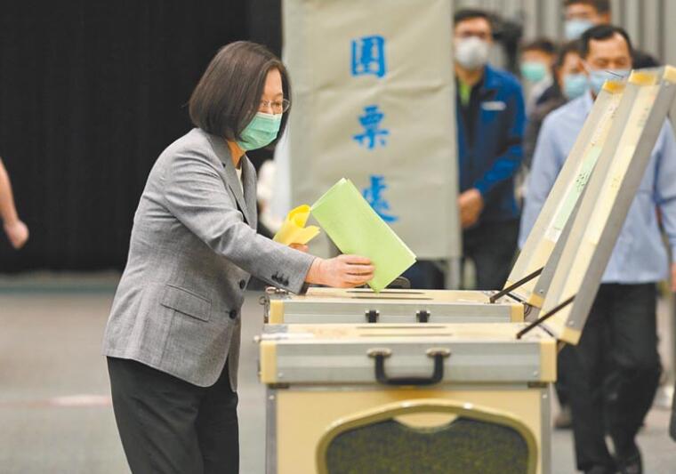 民進(jìn)黨黨代會19日登場,黨主席蔡英文參與中執(zhí)委、中評委選舉投票。(圖片來源:臺灣“中時(shí)電子報(bào)”)