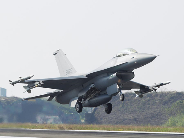 臺空軍F-16V戰(zhàn)機(jī)。(圖片來源:臺灣“中時電子報(bào)”)