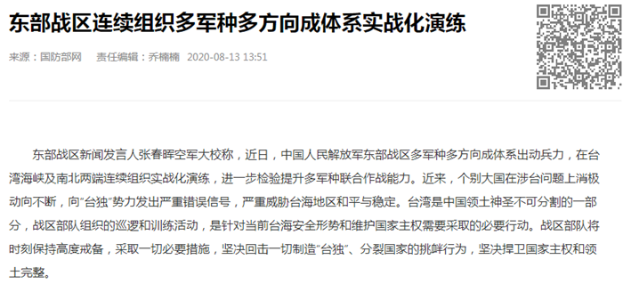 中國(guó)臺(tái)灣網(wǎng)8月14日訊 解放軍13日宣布在臺(tái)灣海峽南北兩端進(jìn)行軍演,引發(fā)臺(tái)媒廣泛關(guān)注,有報(bào)道直指“臺(tái)海緊張?jiān)佻F(xiàn)”。