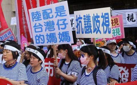 臺(tái)灣大陸配偶抗議照。(圖片來(lái)源于網(wǎng)絡(luò))