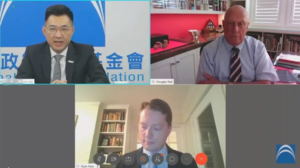國(guó)民黨智庫(kù)26日舉辦線上論壇,美國(guó)國(guó)家安全委員會(huì)前中國(guó)事務(wù)主任何瑞恩(中下)直言,如果兩岸發(fā)生沖突,多數(shù)美國(guó)民眾對(duì)派兵參戰(zhàn)持保留態(tài)度。(圖片取自臺(tái)媒)