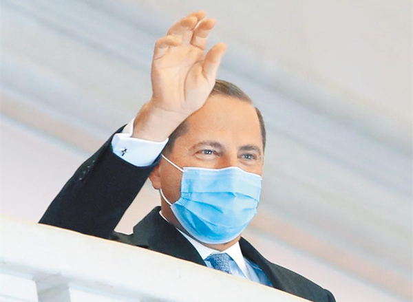 美國衛(wèi)生與公眾服務(wù)部部長阿扎日前曾訪臺。(圖片來源:臺灣《中國時報》)