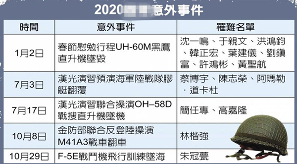 臺(tái)軍意外頻傳 今年至今已發(fā)生5起事故、15名官兵喪生