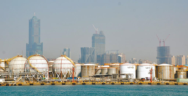 圖為遠望高雄亞洲新灣區(qū)的石化儲槽密密麻麻。(圖片來源:臺灣“中時新聞網(wǎng)”)