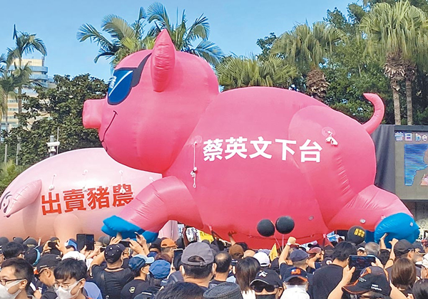 島內(nèi)各界反對(duì)含瘦肉精萊克多巴胺豬肉進(jìn)口。(圖片來(lái)源:臺(tái)灣“中時(shí)電子報(bào)”)
