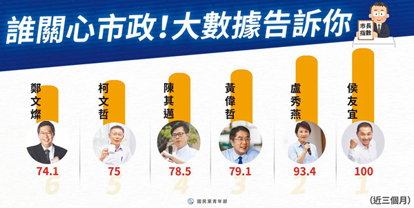國民黨公布“六都”市長指數(shù) 侯友宜勇奪第一
