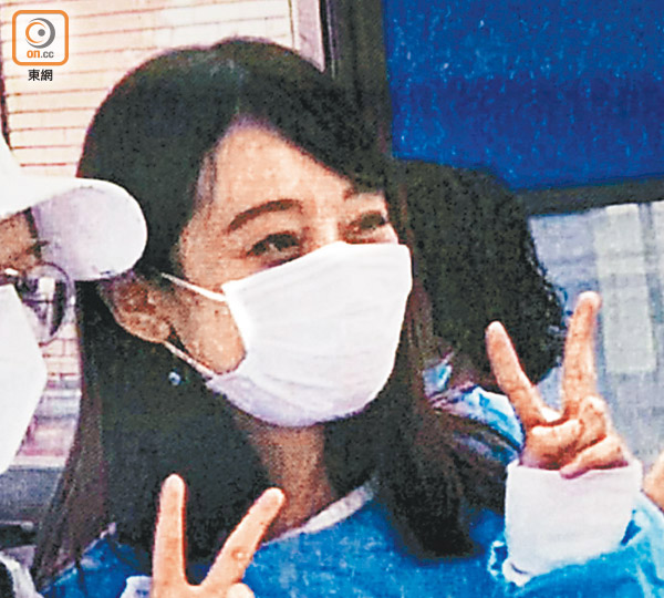 “爆眼少女”精神飽滿,與友人興奮合照。(圖片來源:香港《東方日報》)